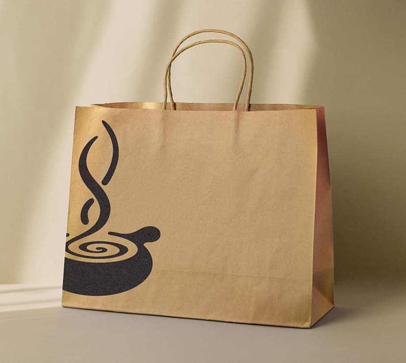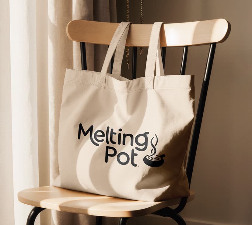 - Natural kraft paper shoppers in multiple sizes (10x5x10 and 16x6x12), printed with Melting Pot’s signature dark branding